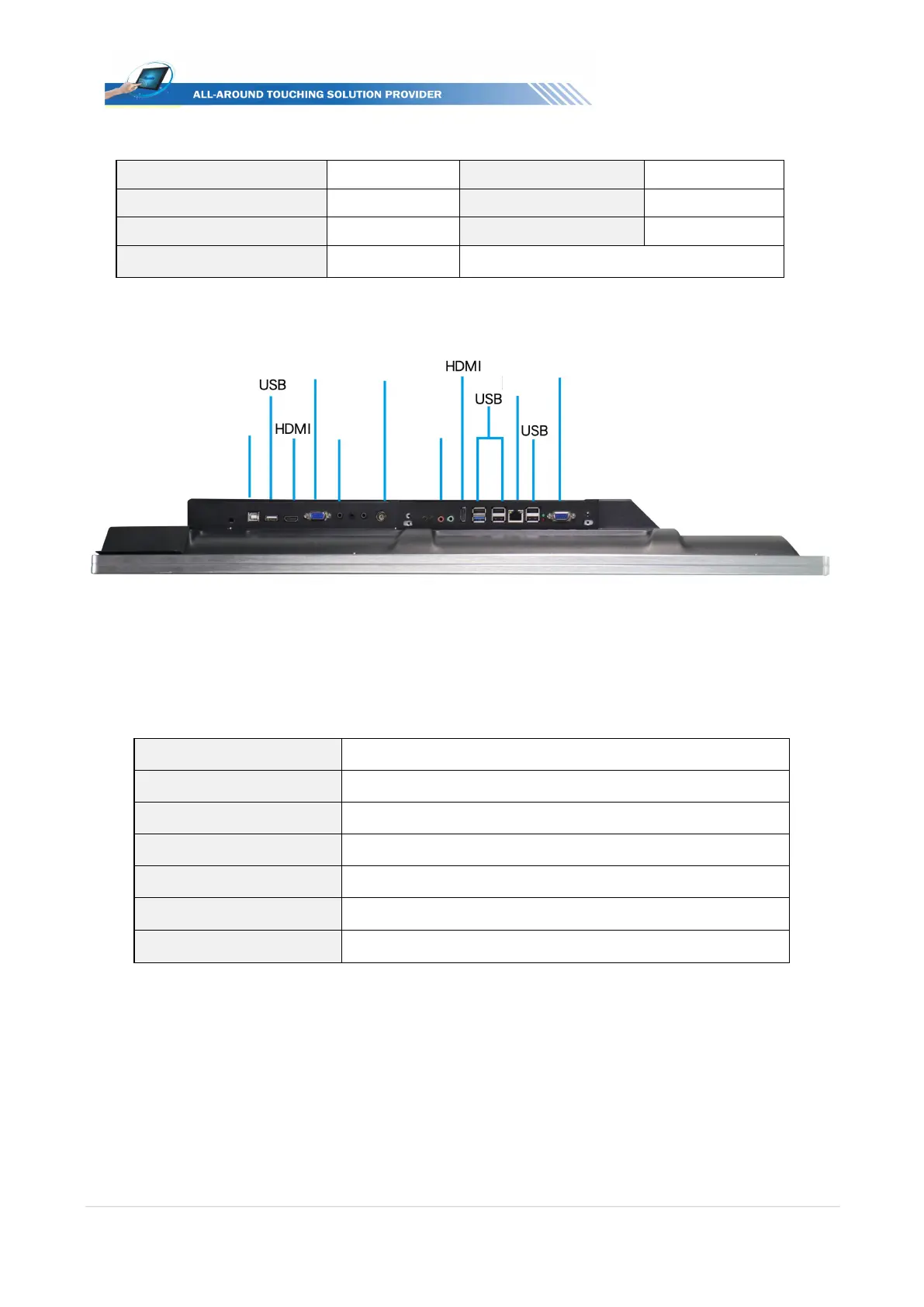 TouchWo TD55HD - 3 Interface & Accessory Parameters; Touch Monitor Interfaces Parameters; Android AIO Interfaces Parameters; Windows AIO Interfaces Parameters
