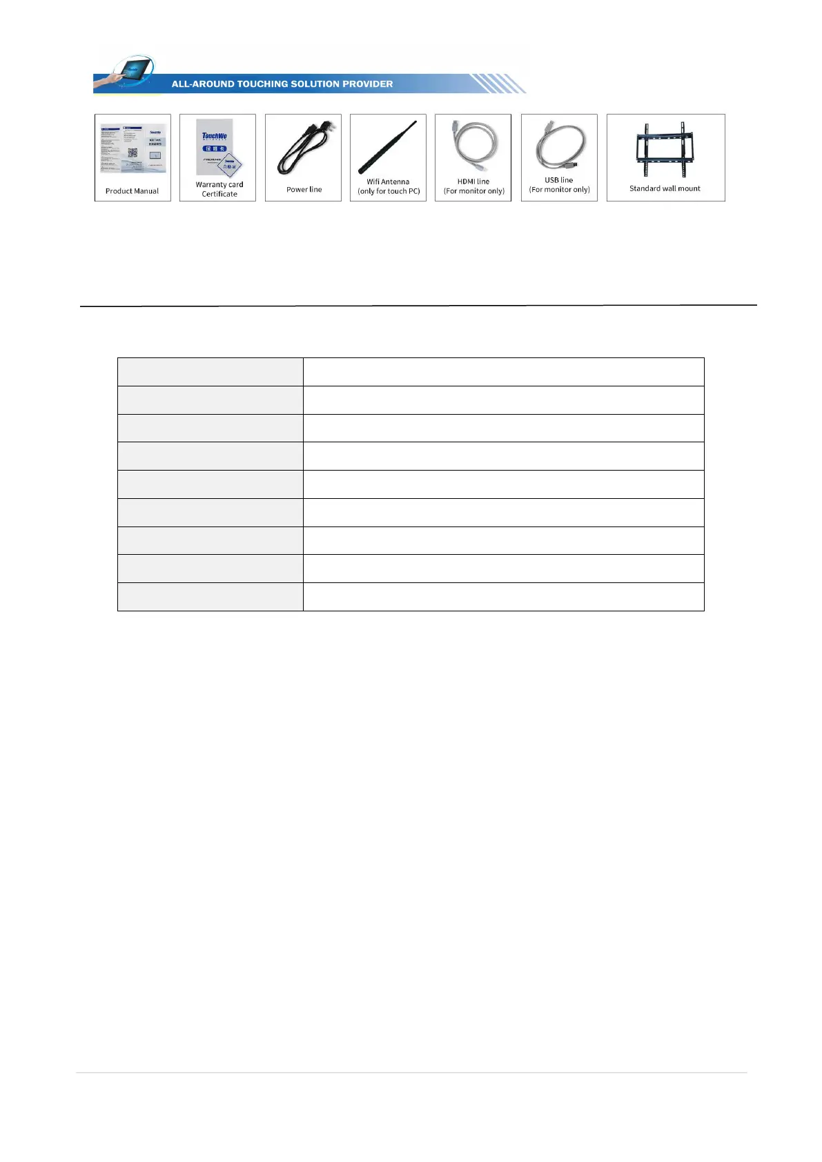 TouchWo TD55HD - 4 Physical Specs & Drawings; Physical Specs