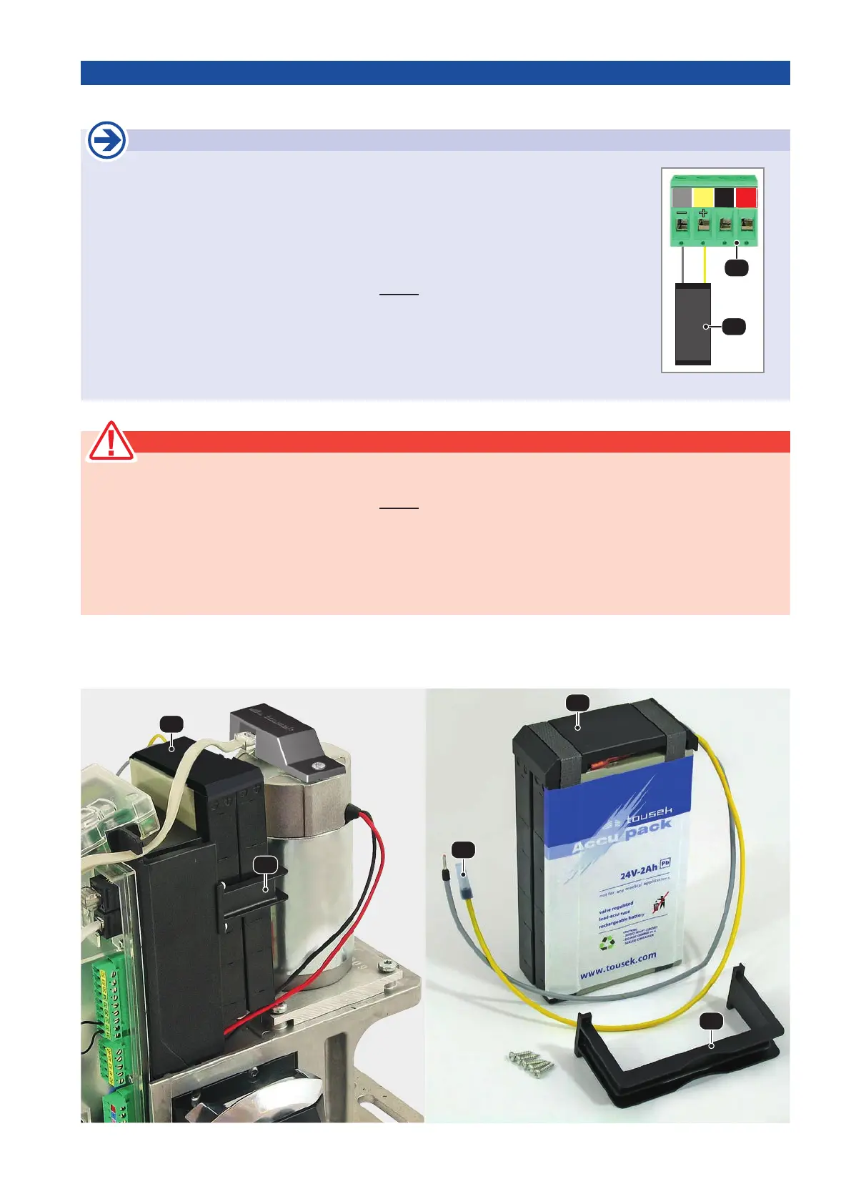 5.1 Battery connection Sliding gate operator PULL T24, -T24speed