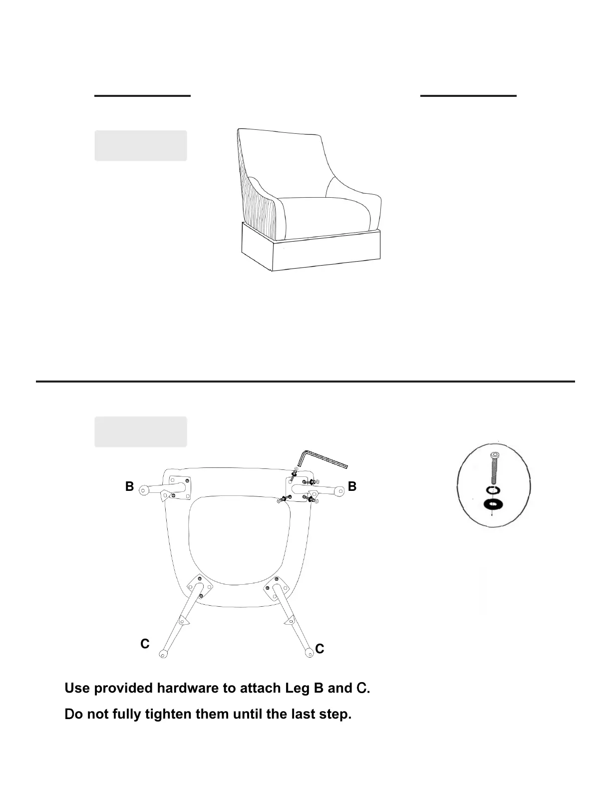 Use provided hardware to attach Leg B and C.