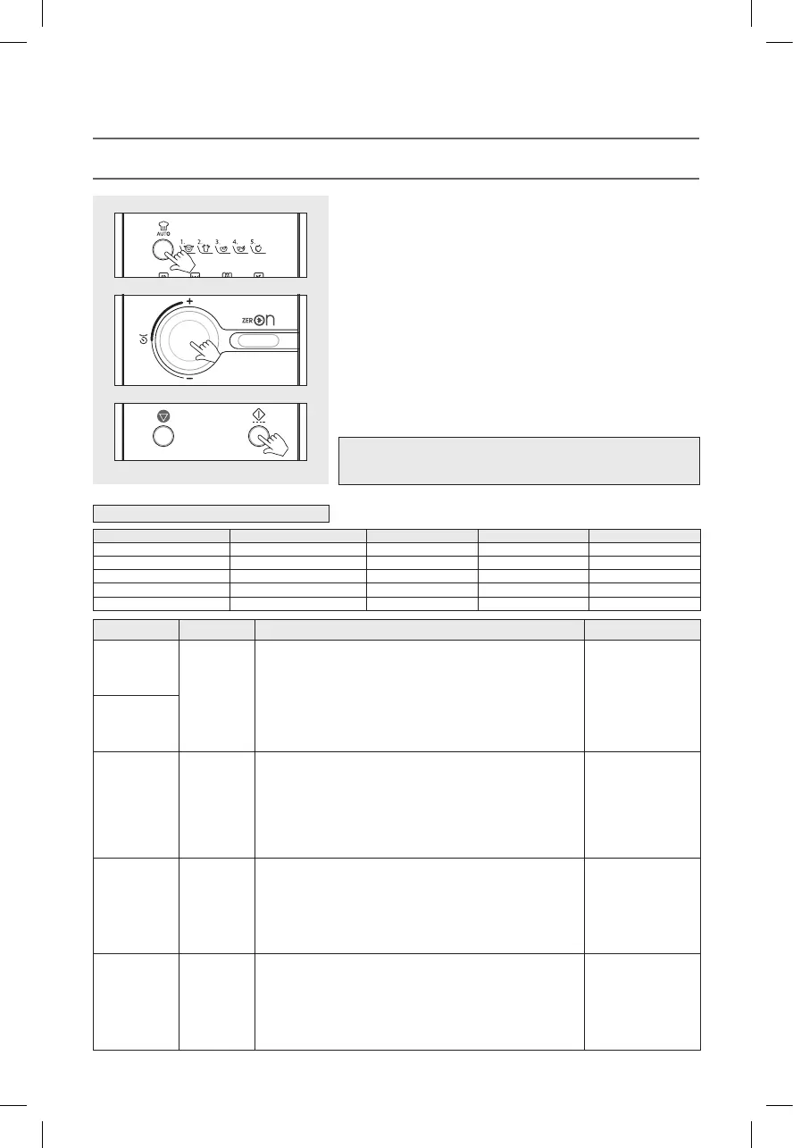 Refer to the auto cook menu chart below for further details.