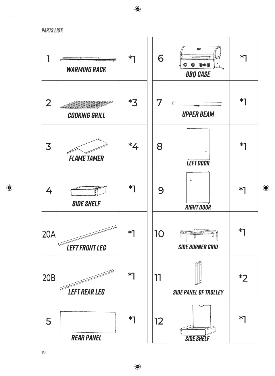 Tower Hobbies STEALTH4000 - Parts List; Main BBQ Components; Trolley and Cabinet Parts