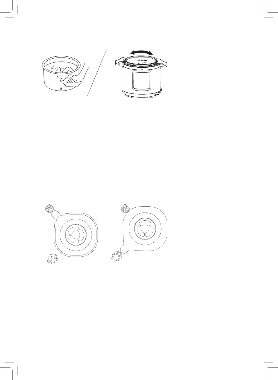 • Put the inner pot into the cooker. Turn it left and right to ensure it makes good contact