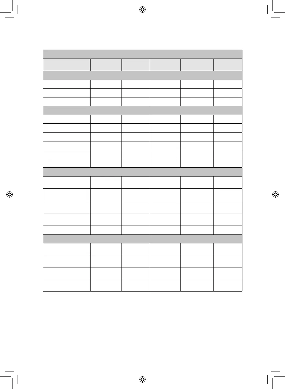SETTINGS TABLE: