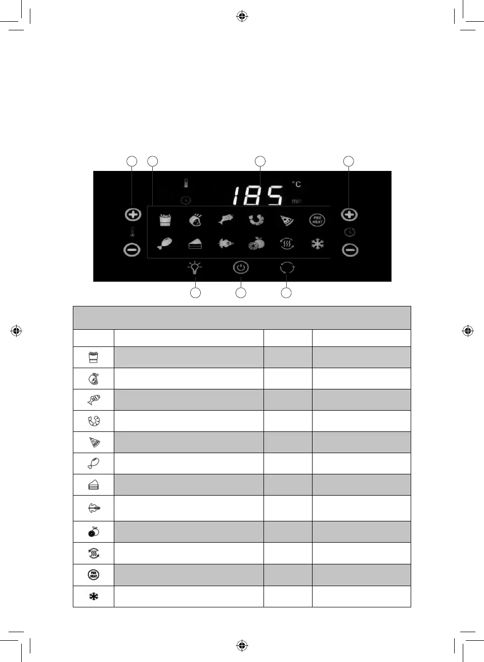 3. LED display screen (alternating display of temperature and remaining cooking time during