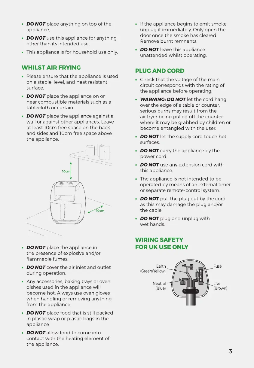 Tower Hobbies T17071 - Operational Safety Precautions; Air Frying Safety; Plug and Cord Safety; UK Wiring Safety