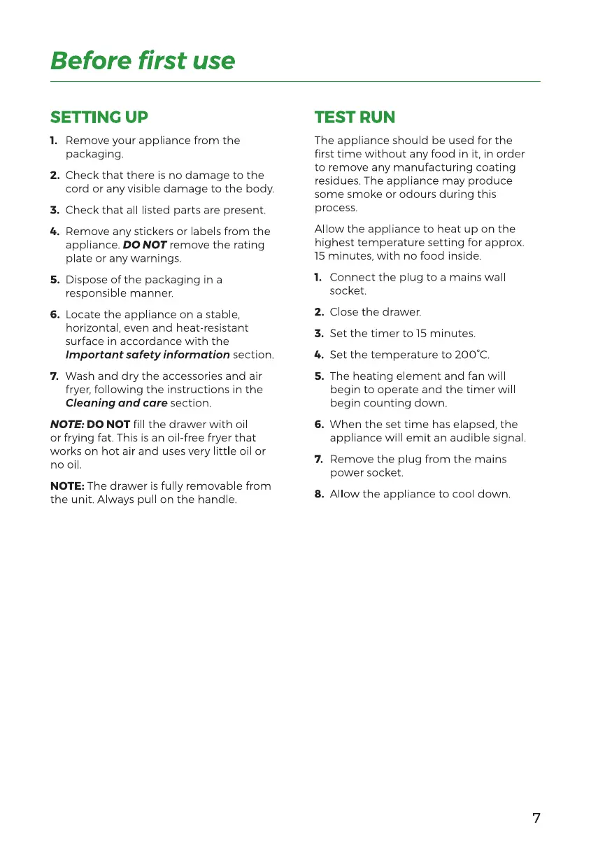 Tower Hobbies T17071 - Before First Use; Setting Up Your Appliance; Performing a Test Run