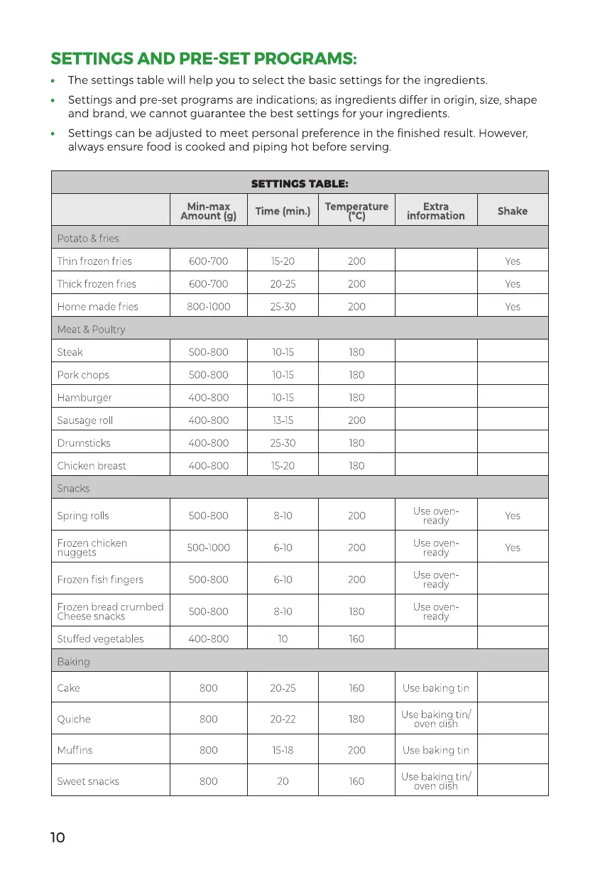 Tower Hobbies T17072 - SETTINGS AND PRE-SET PROGRAMS: