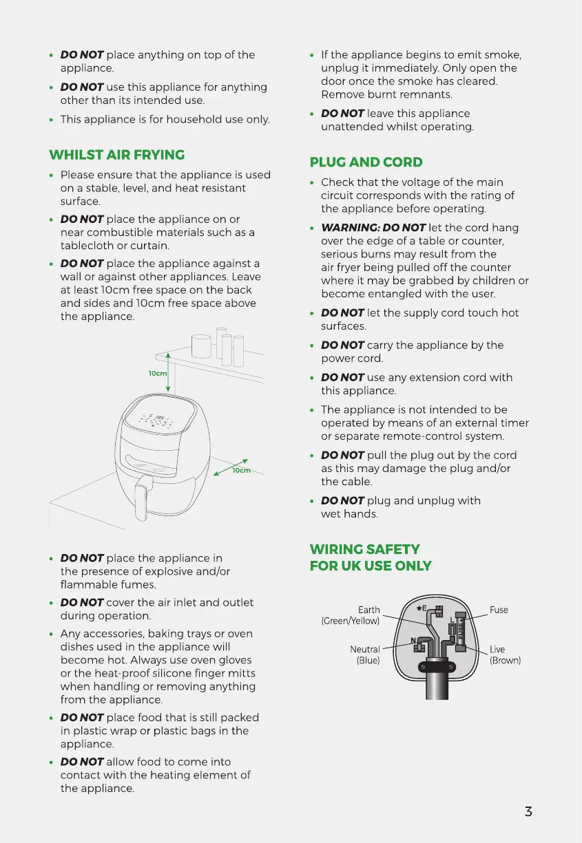 Tower Hobbies T17072 - WHILST AIR FRYING; PLUG AND CORD; WIRING SAFETY FOR UK USE ONLY