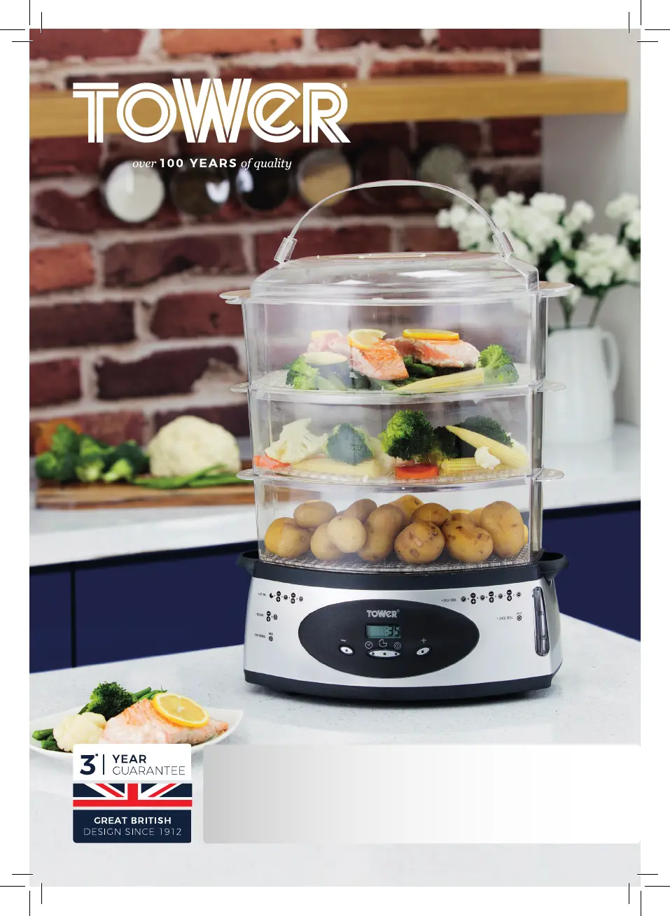 If your Tower Hobbies Electric Steamer is taking too long to steam food, ensure the water level in the reservoir is above the minimum fill line. Overfilling the basket can also extend steaming times. Refer to the steaming guides in this manual for proper cooking times.