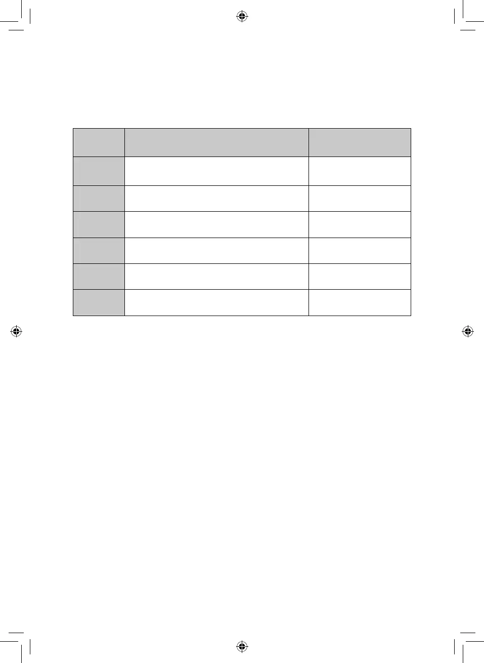 There are six power settings, as follows: