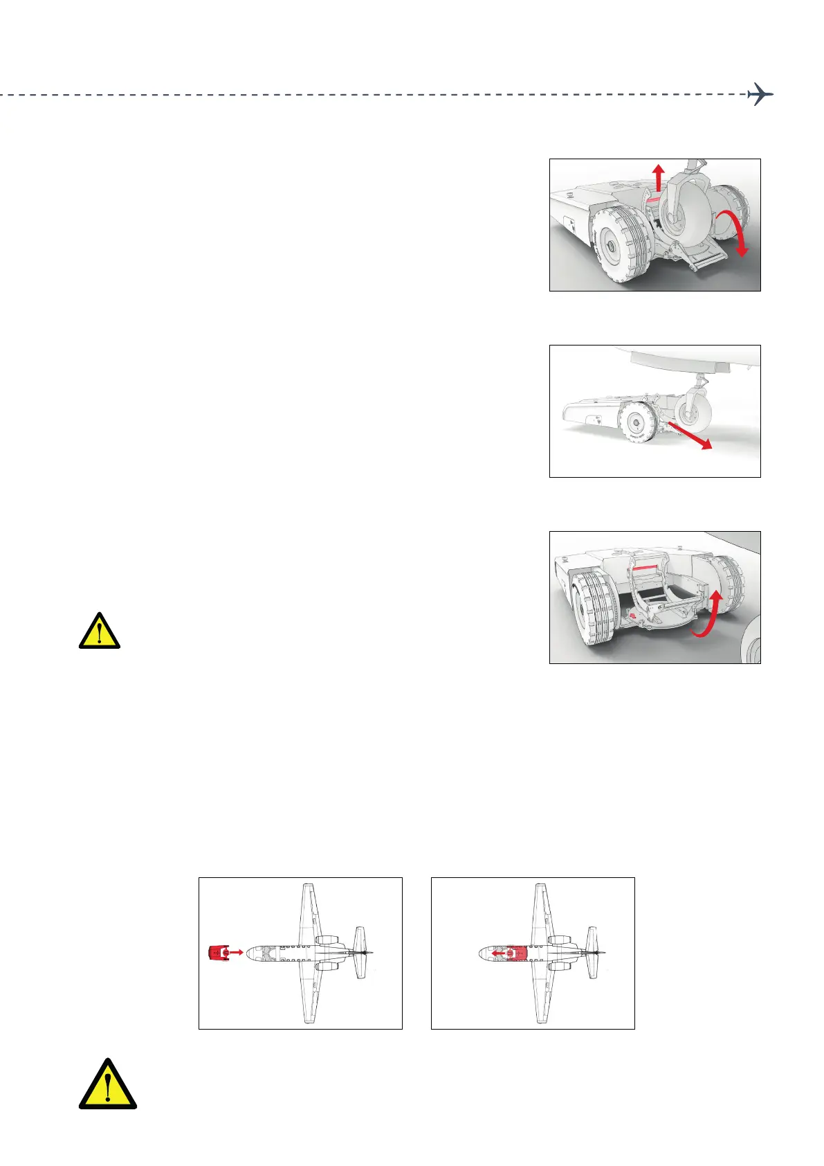 The aircraft tug oers two dierent ways to pick up the nose wheel of the aircraft. The graphic