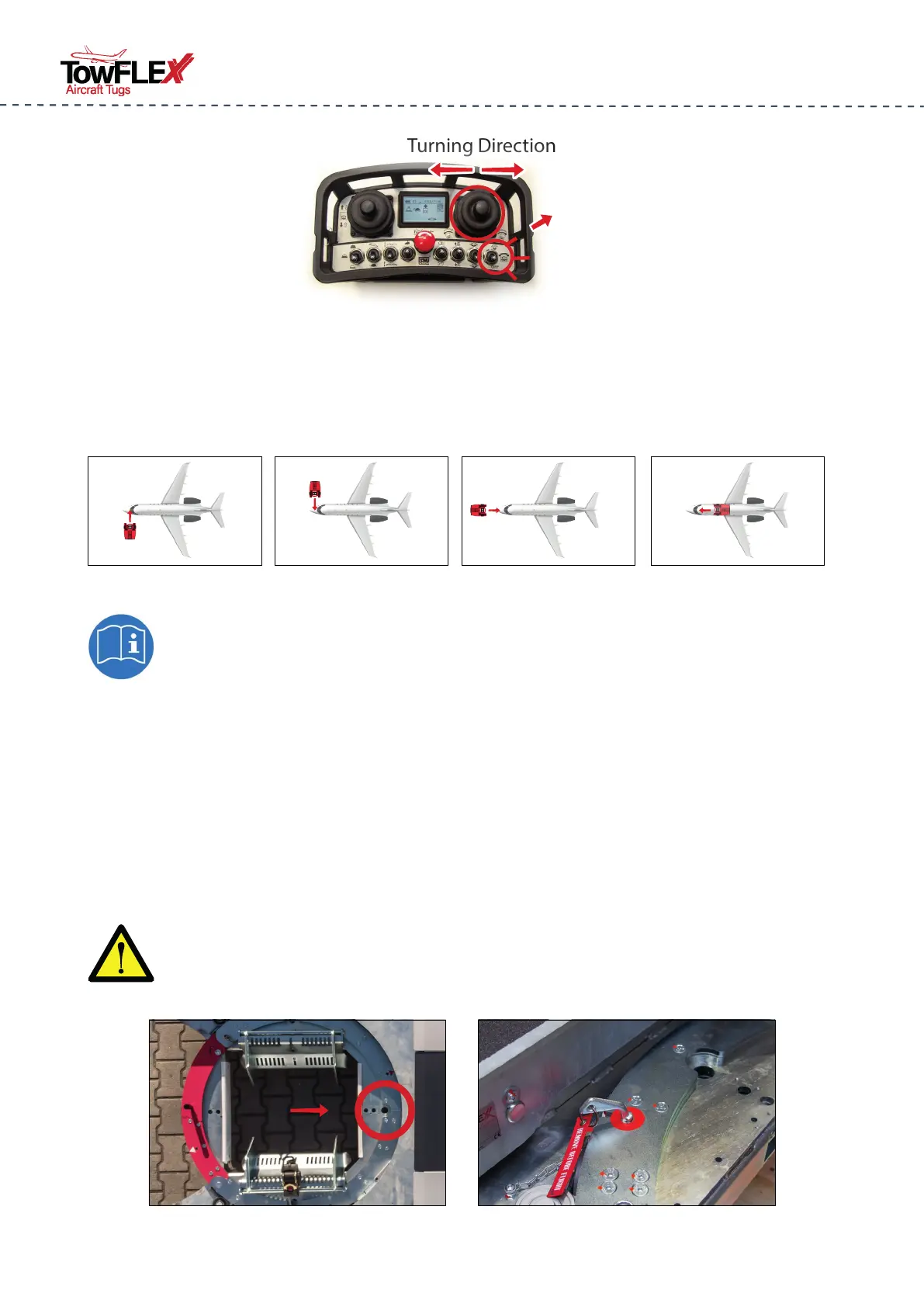 The aircraft tug oers four dierent ways in which the nose wheel of the aircraft can be appro-