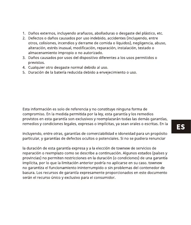 a dicha garantía, townew limita la duración y los remedios de dicha garantía a