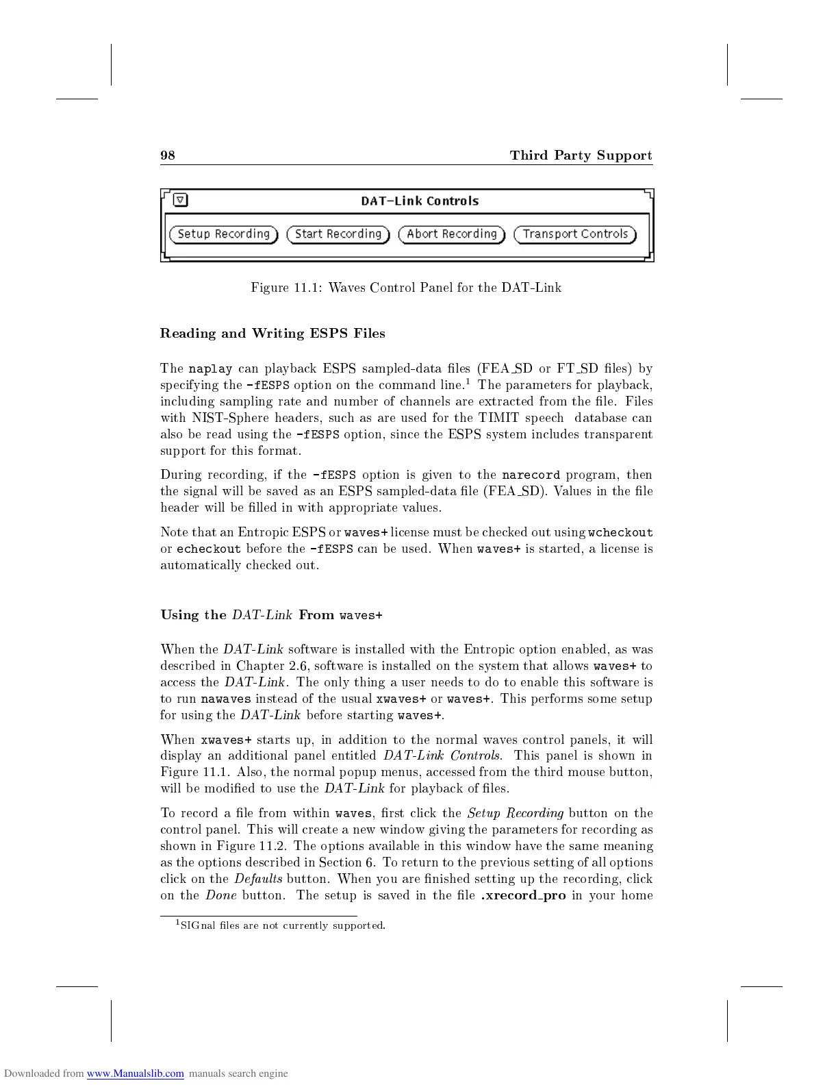can playback ESPS sampled-data les (FEA SD or FT SD les) by