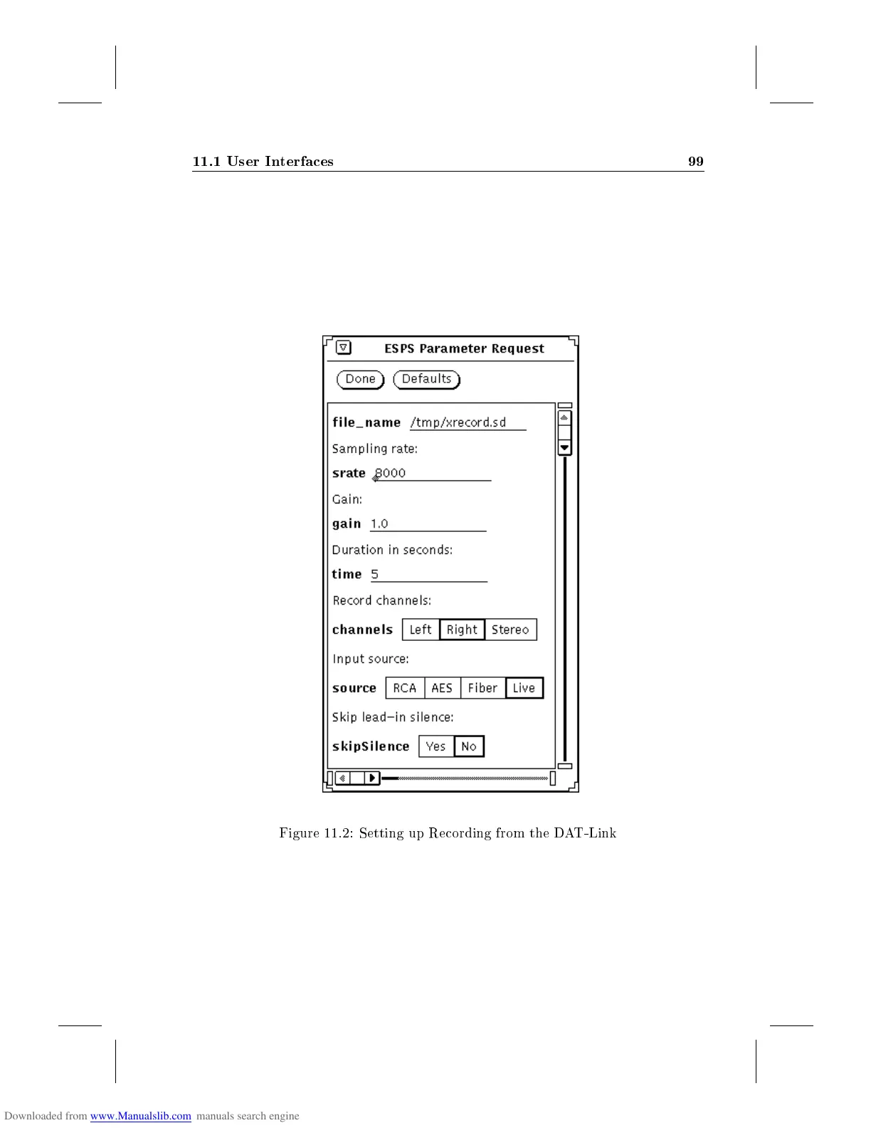 Figure 11.2: Setting up Recording from the DAT-Link