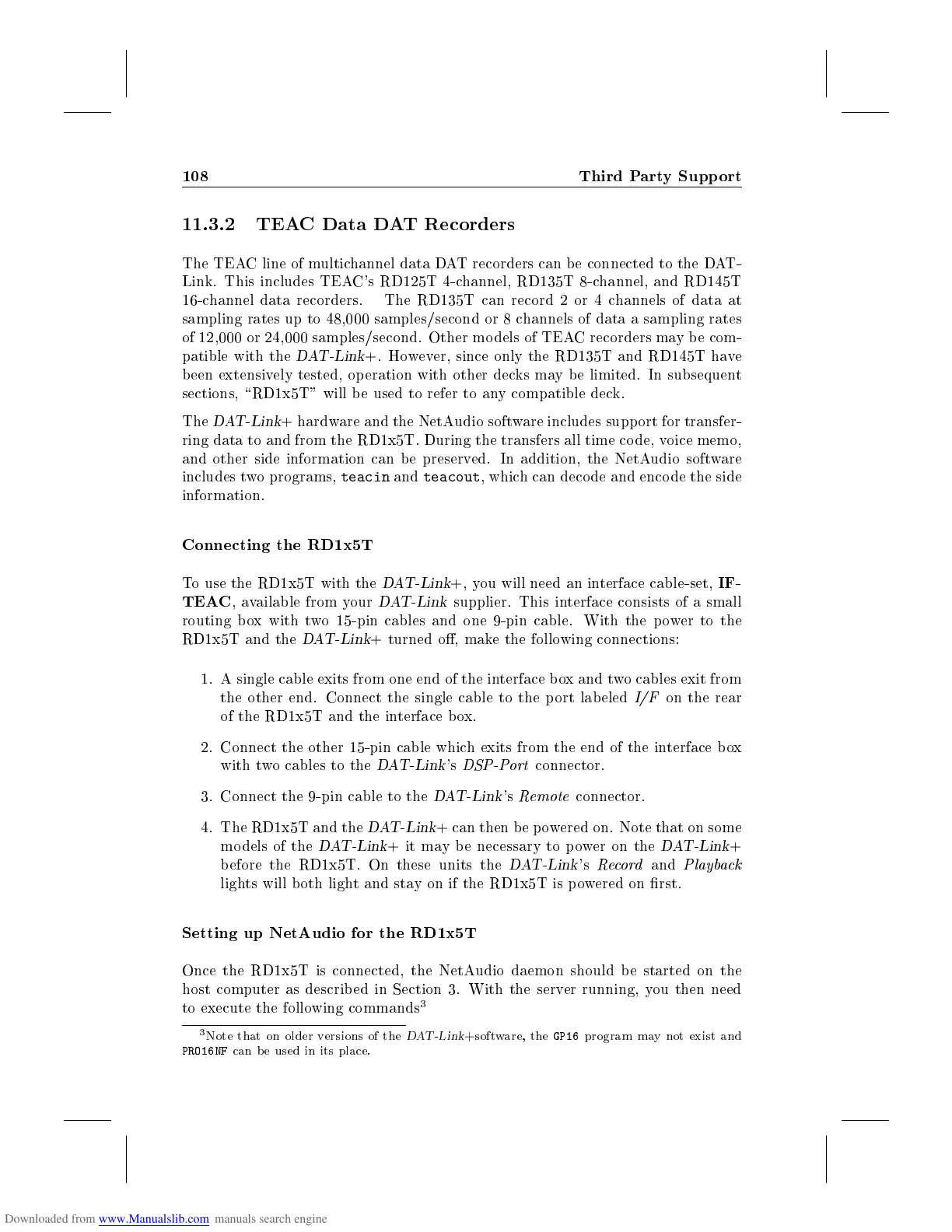 11.3.2 TEAC Data DAT Recorders