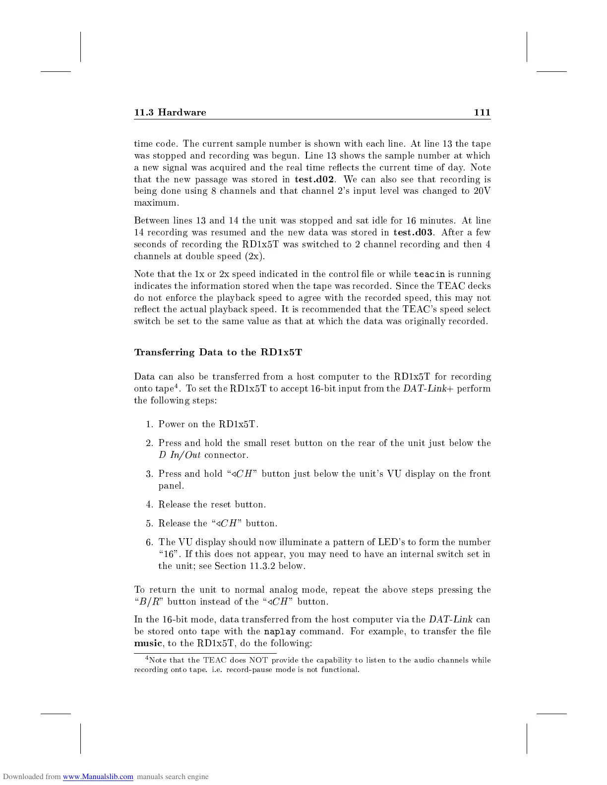 Data can also be transferred from a host computer to the RD1x5T for recording