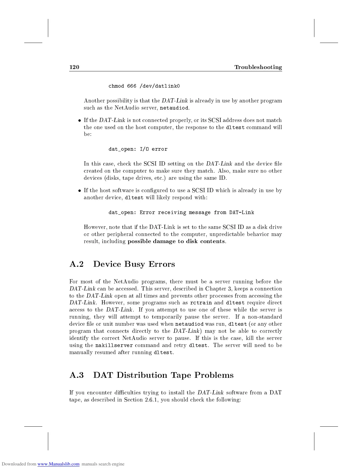 However, note that if the DAT-Link is set to the same SCSI ID as a disk drive