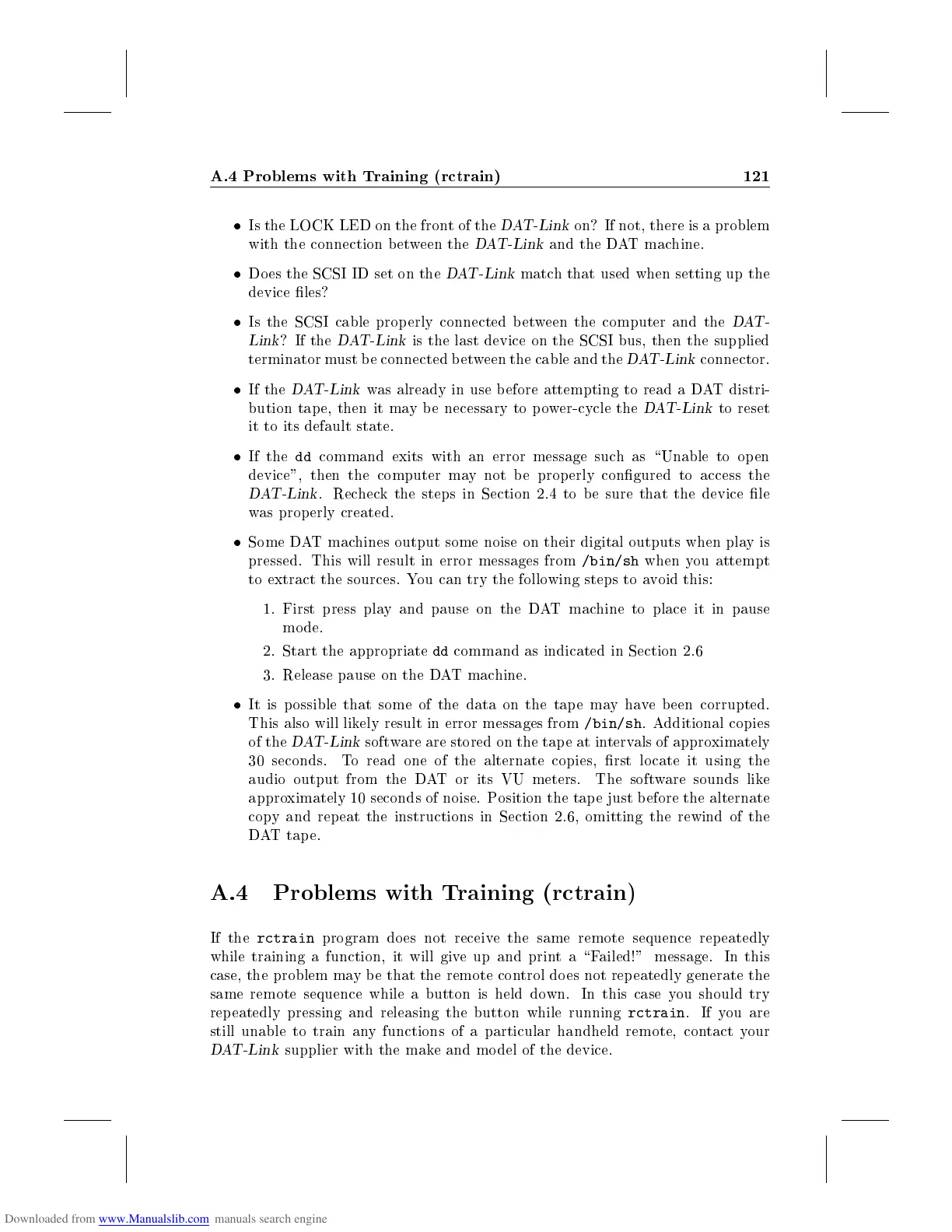 A.4 Problems with Training (rctrain) 121