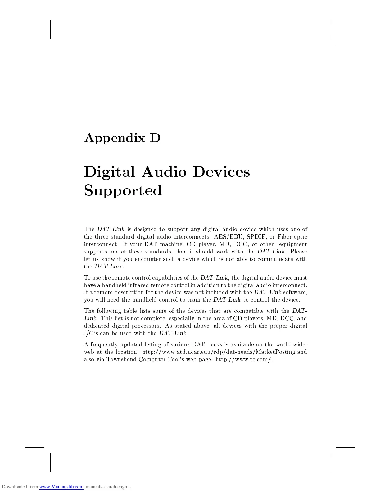is designed to supp ort any digital audio device which uses one of