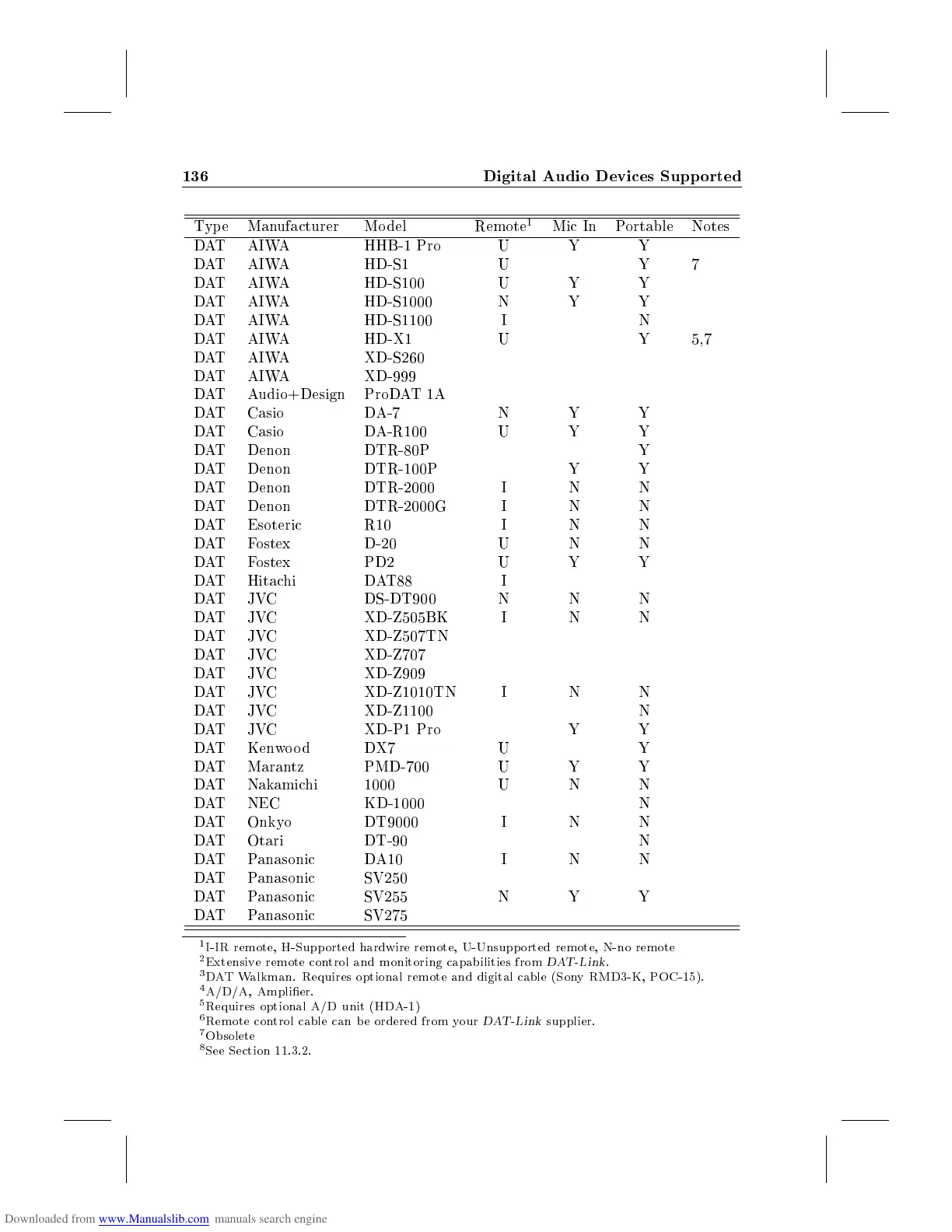 DAT Denon DTR-100P Y Y