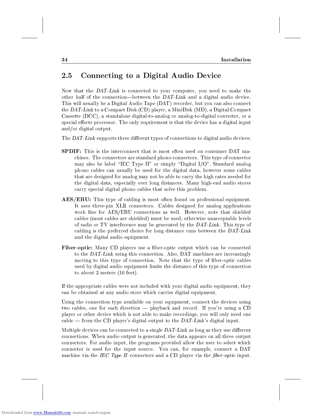 This will usually be a Digital Audio Tape (DAT) recorder, but you can also connect