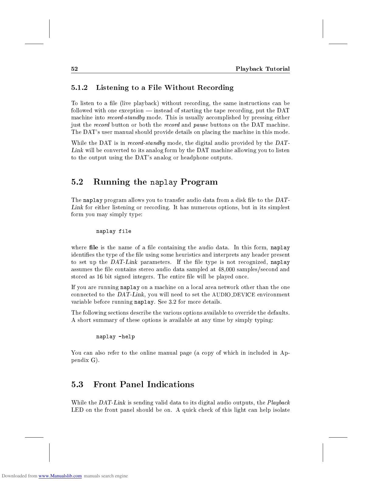 to the output using the DAT's analog or headphone outputs.