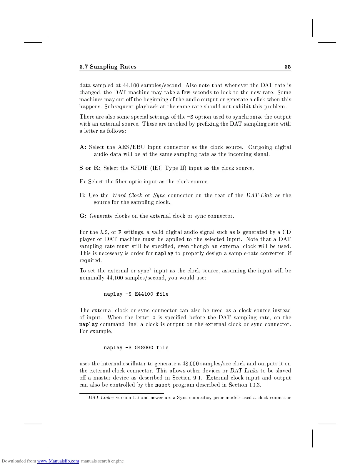 with an external source. These are invoked by prexing the DAT sampling rate with