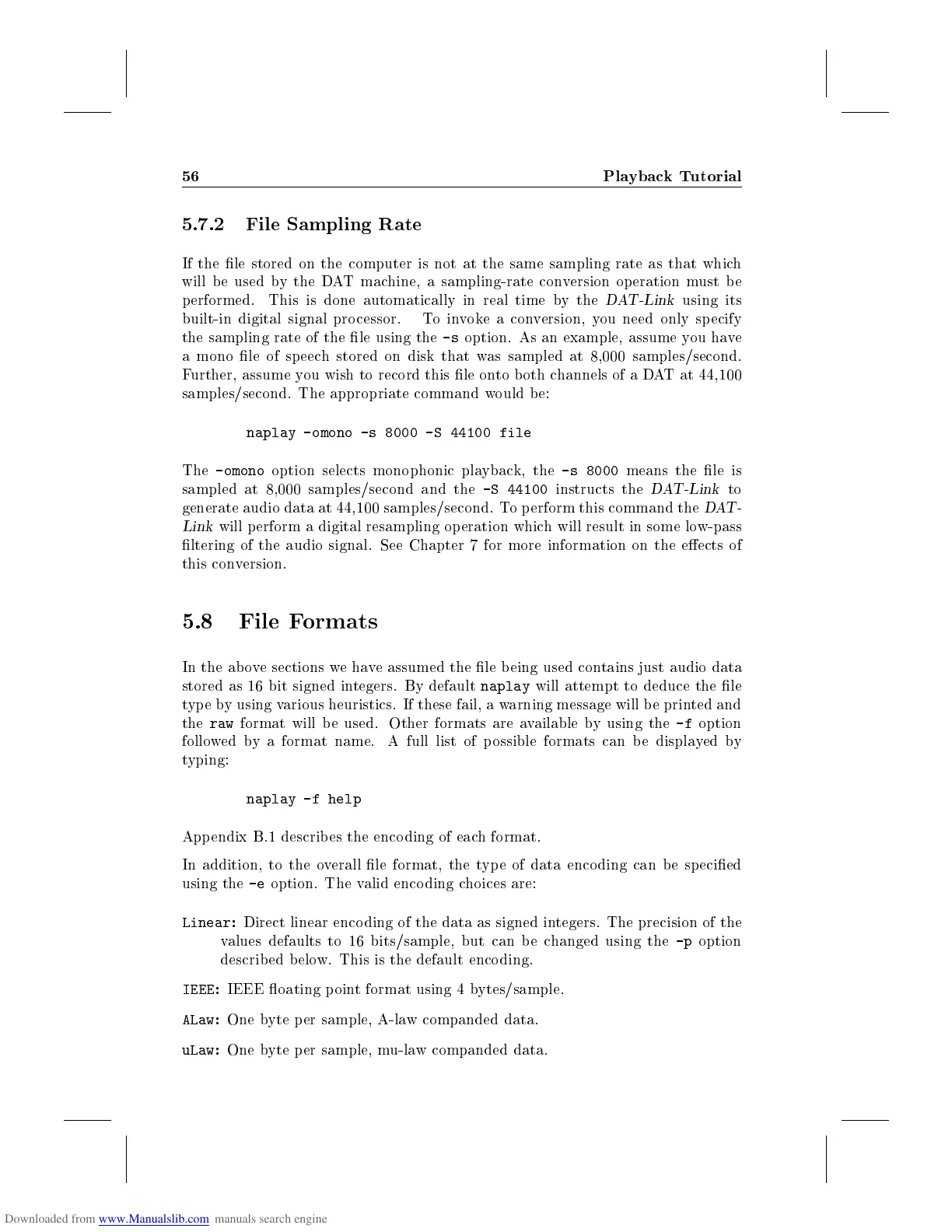 Further, assume you wish to record this le onto b oth channels of a DAT at 44,100