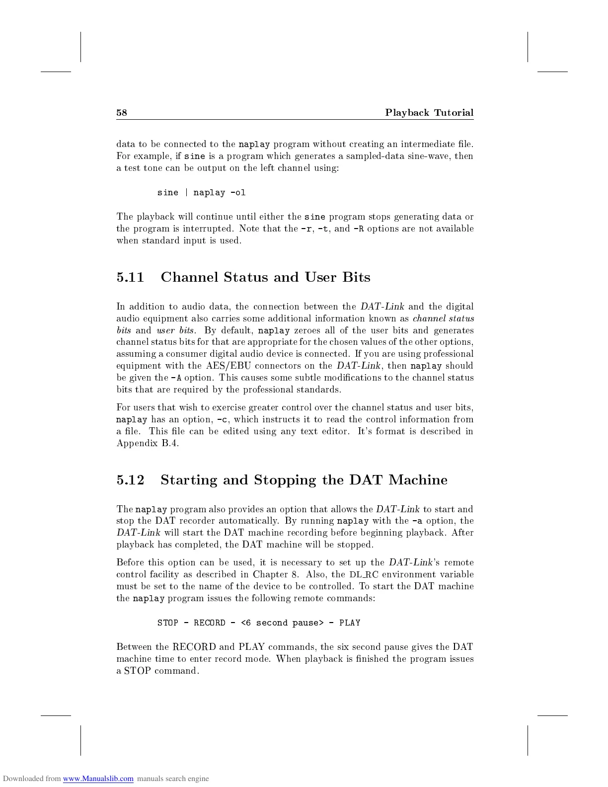 playback has completed, the DAT machine will be stopp ed.