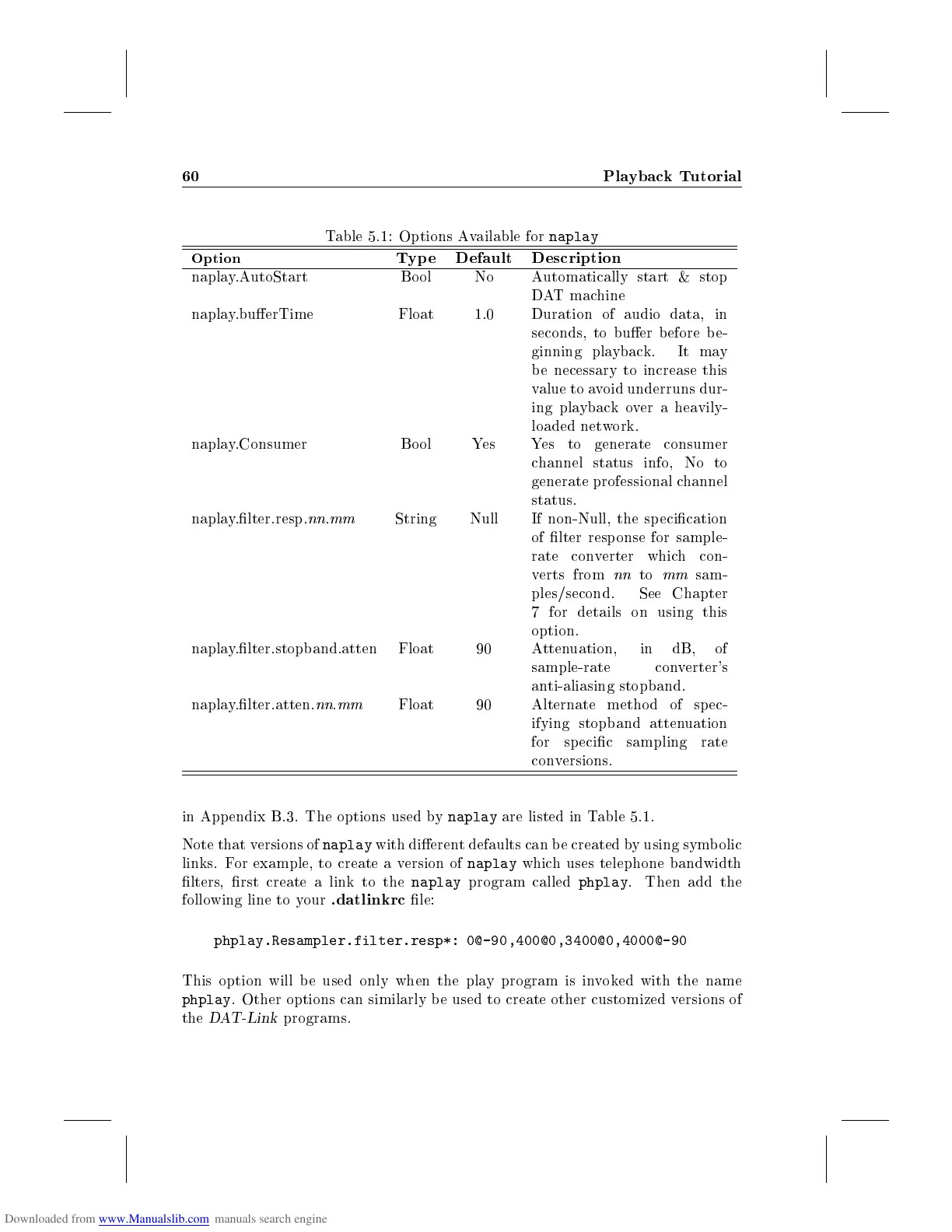 naplay.lter.stopband.atten Float 90 Attenuation, in dB, of