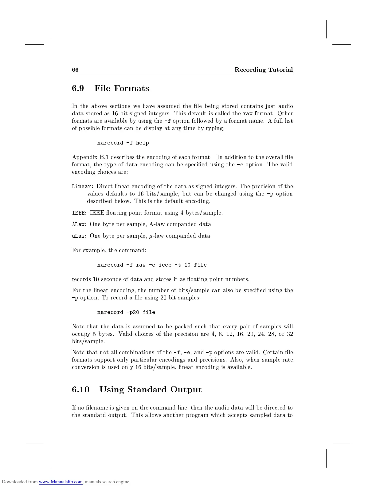 If no lename is given on the command line, then the audio data will be directed to