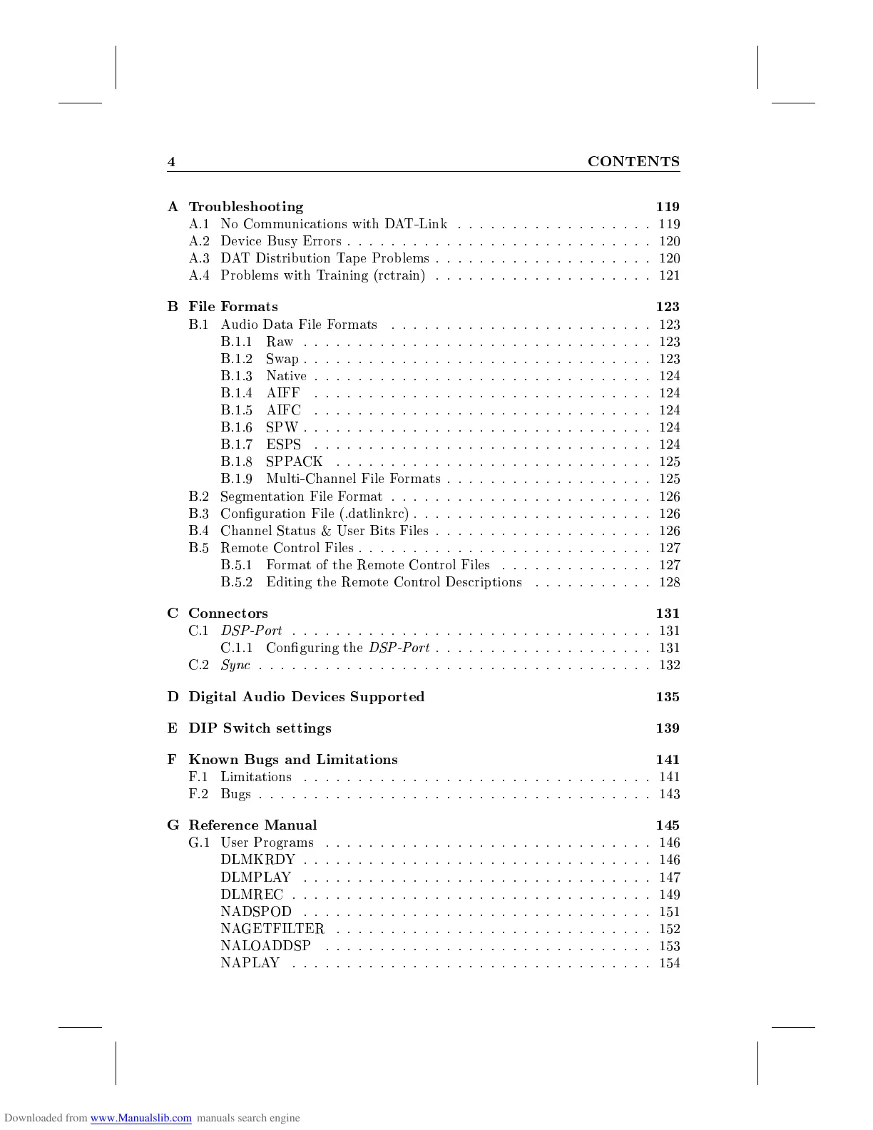D Digital Audio Devices Supp orted 135