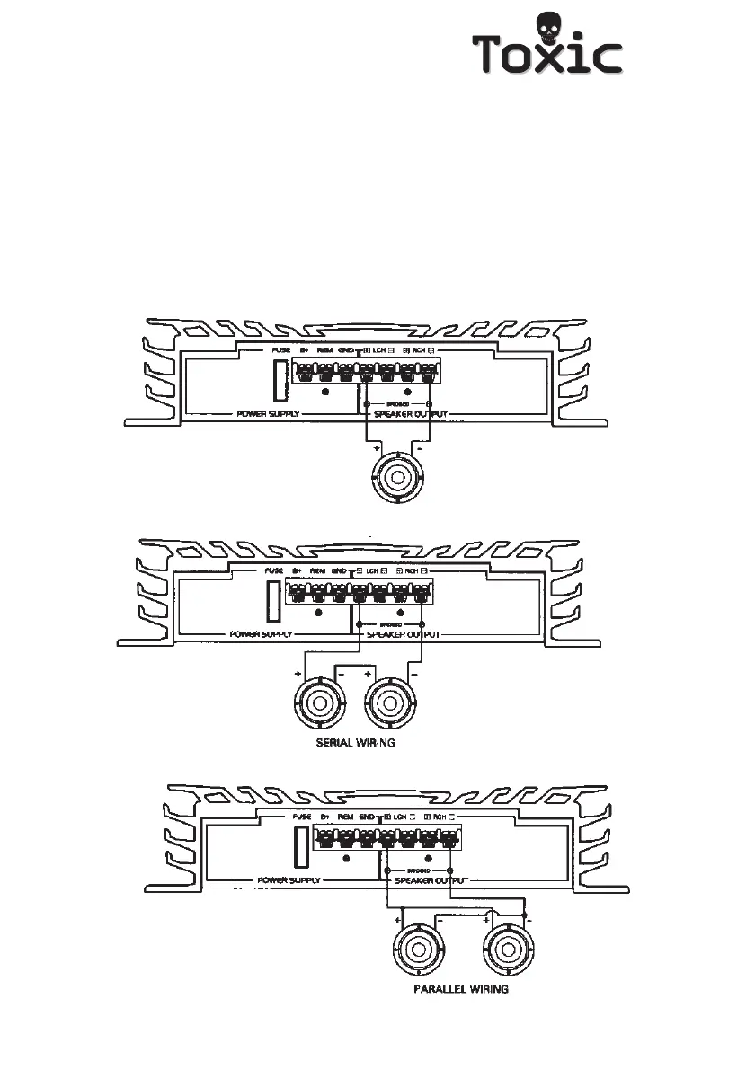 Modo puente con 2 altavoces (8 ohmios) en conexión paralela: