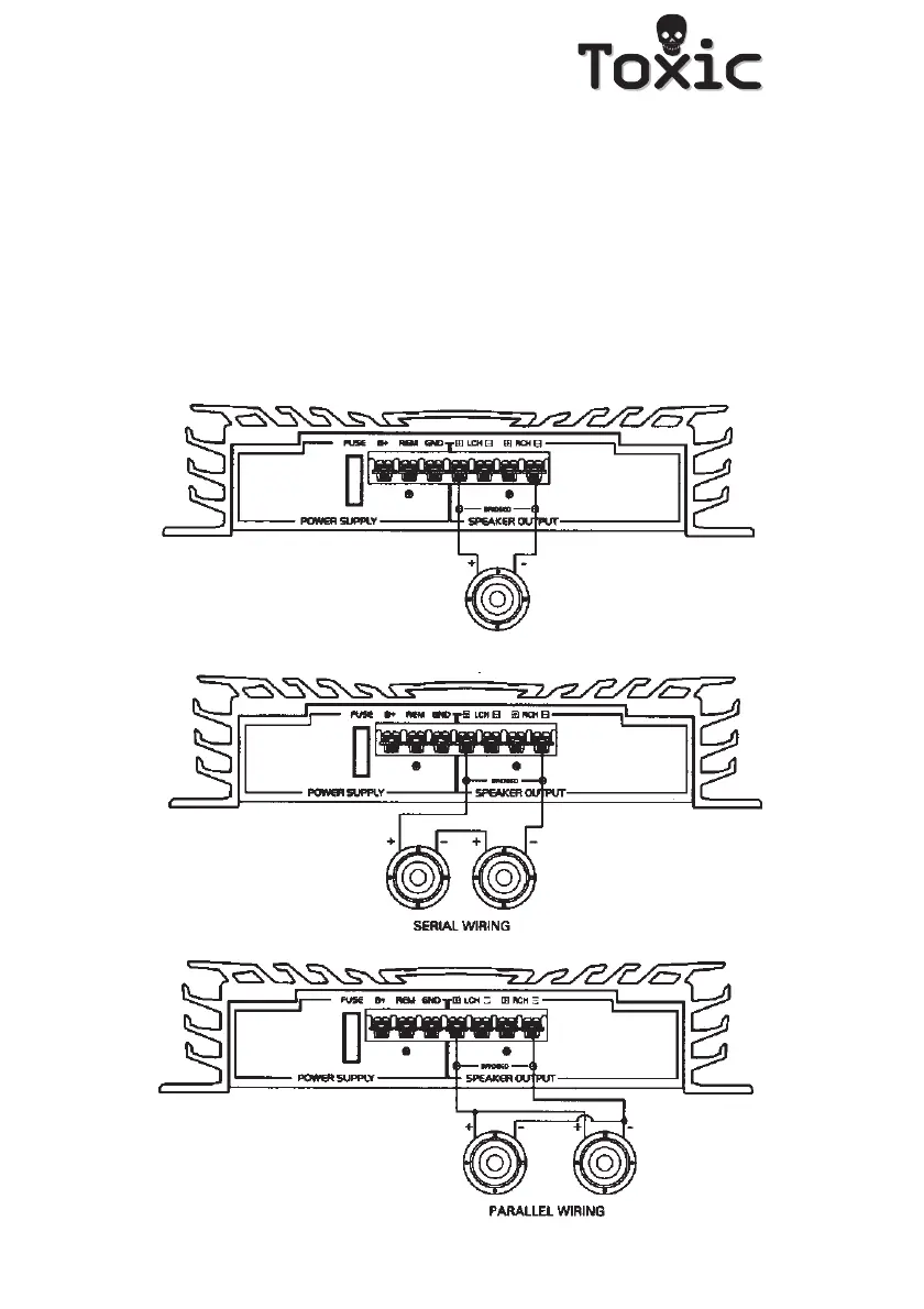 Brücken-Modus mit 2 Lautsprechern ( 8 Ohm) in Parallelschaltung:
