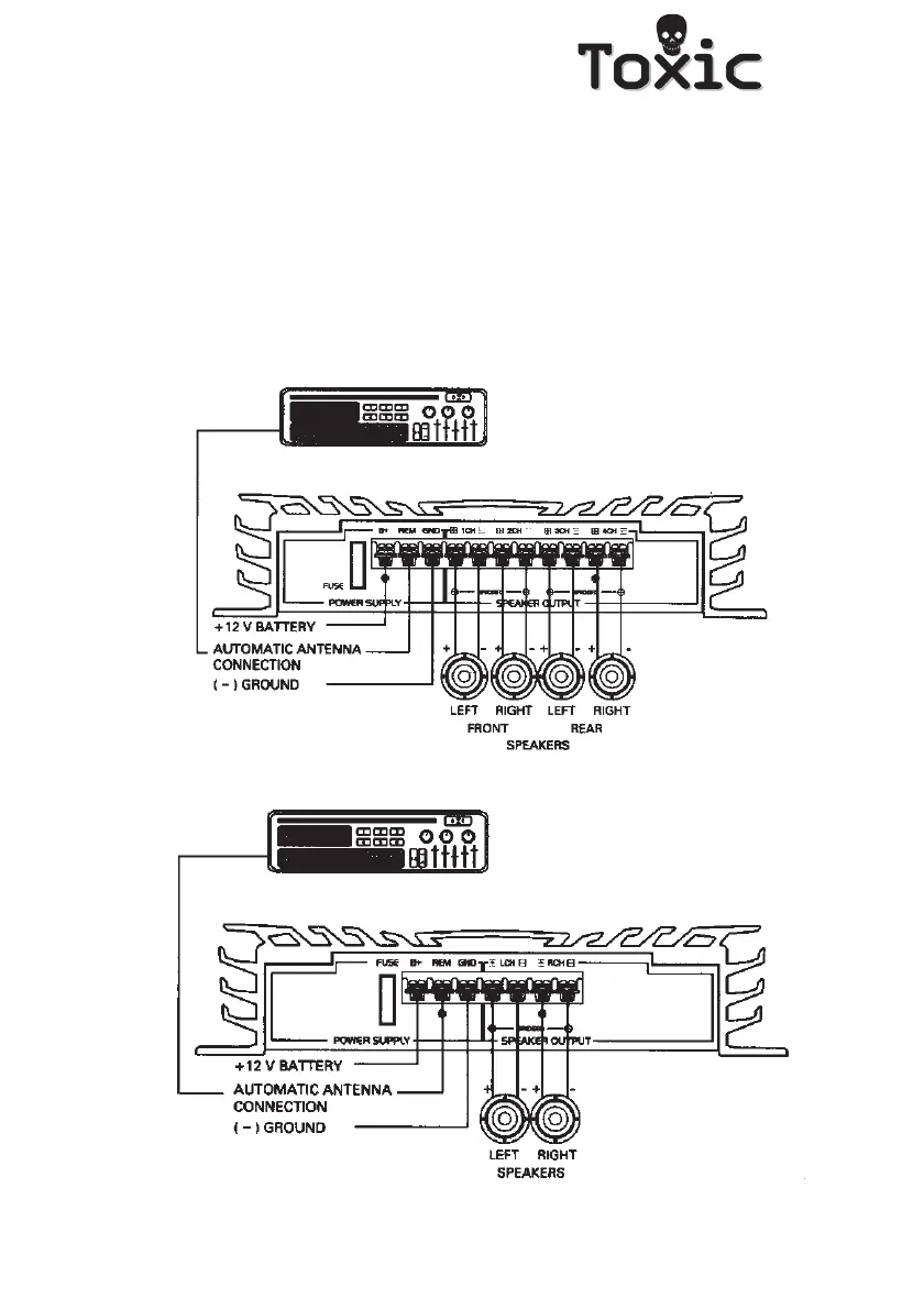 The connection with 4 channel stereo mode is as follows: