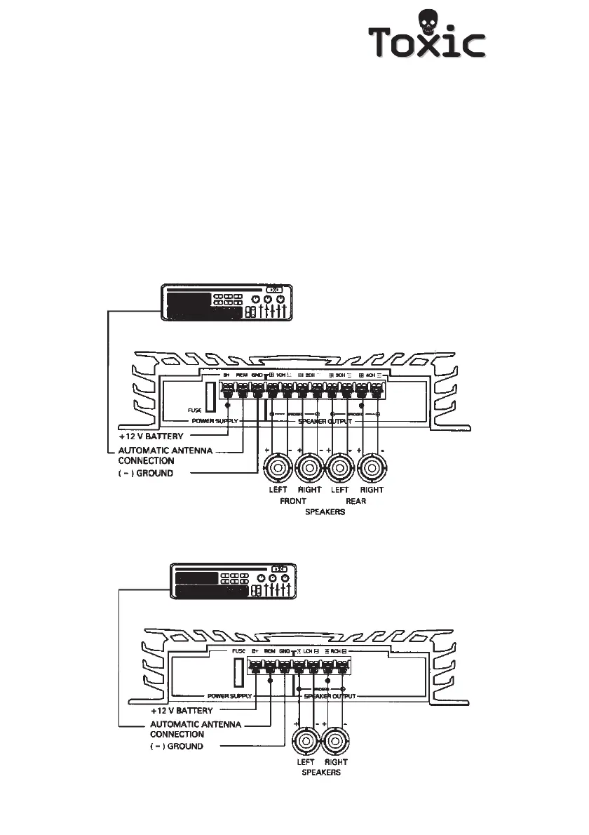 L’impédance normale des haut-parleurs est 4 ohms par canal. 2 ou 8 ohms