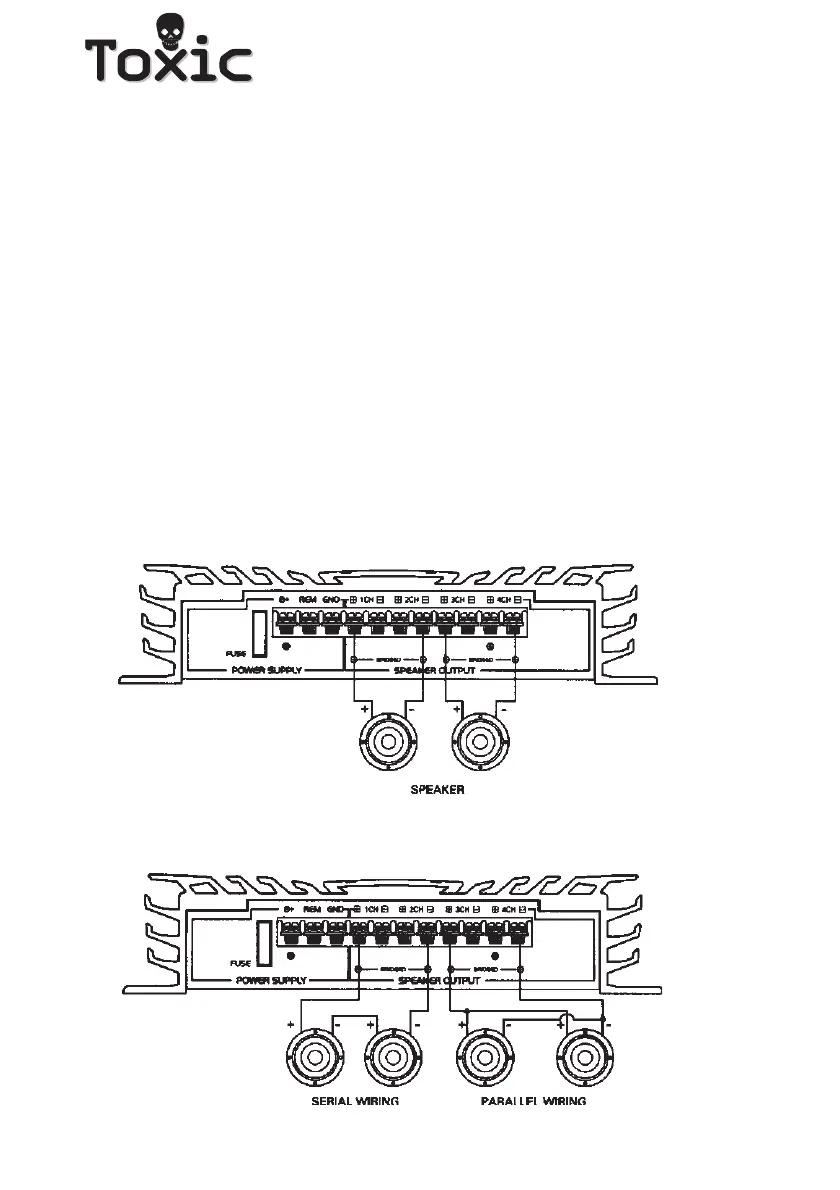 mode, it is possible to connect 2 speakers (2 or 4 ohm) in series connection,