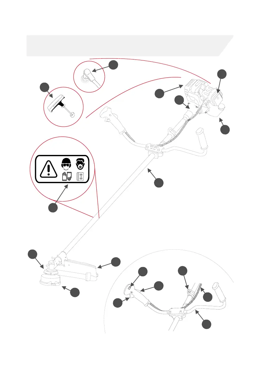 BRUSH CUTTER COMPONENTS / UBICACIÓN DE LOS COMPONENTES DE LA DES-