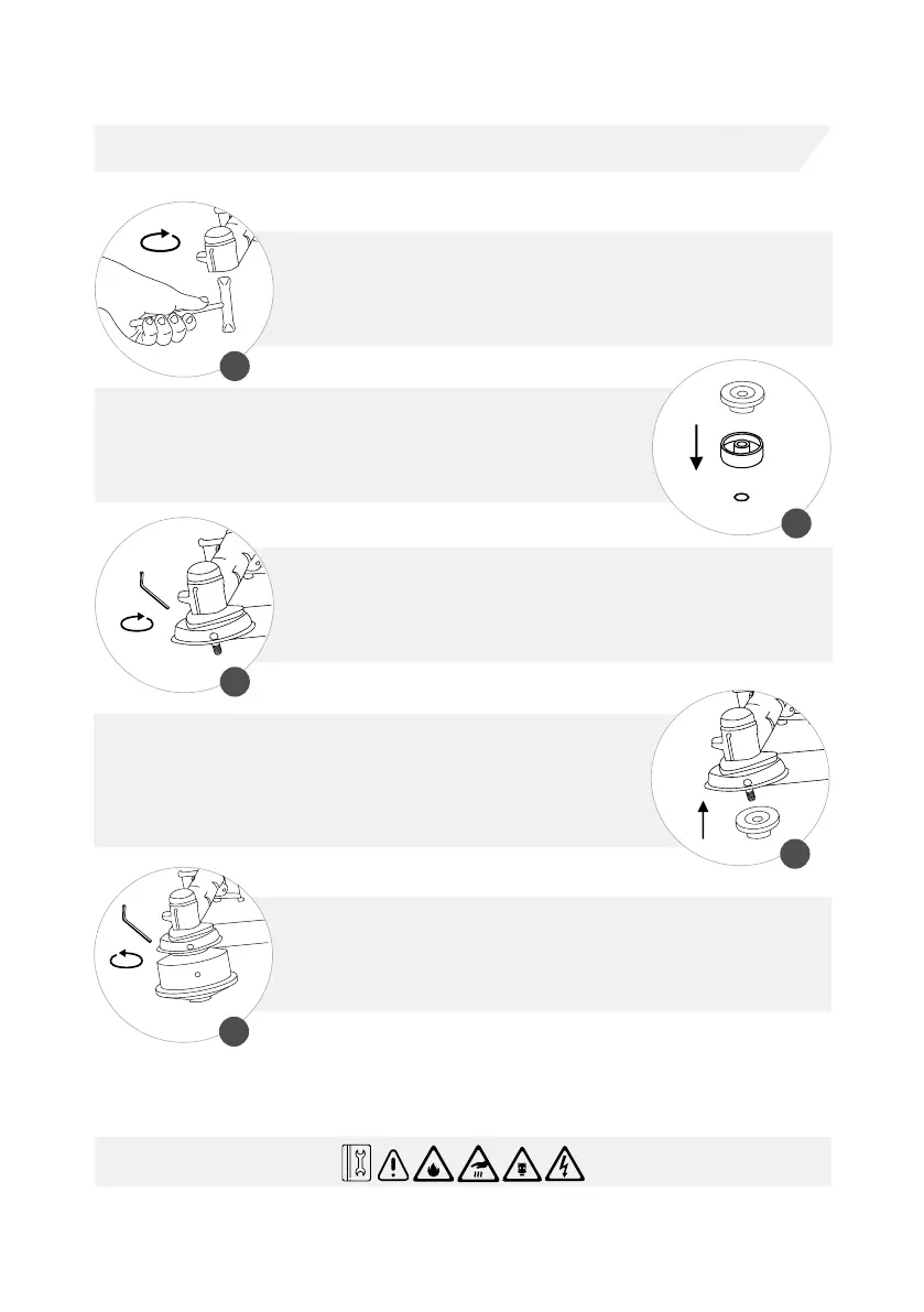 TRAVE O EIXO COM A CHAVE ALLEN, ENCAIXE O CARRETEL E ROSQUEIE EM SENTI-