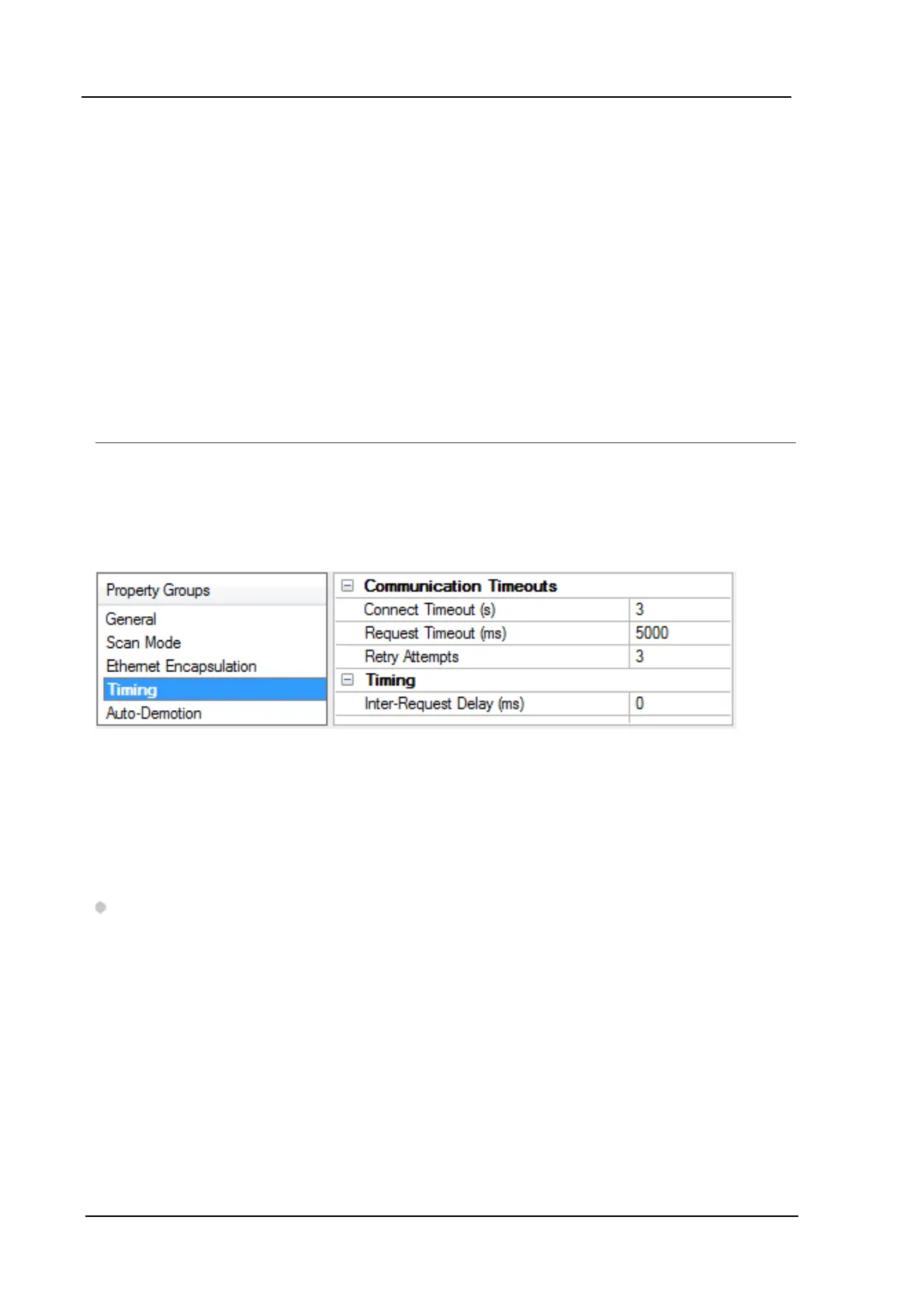 Communications Timeouts properties are specific to each configured device.