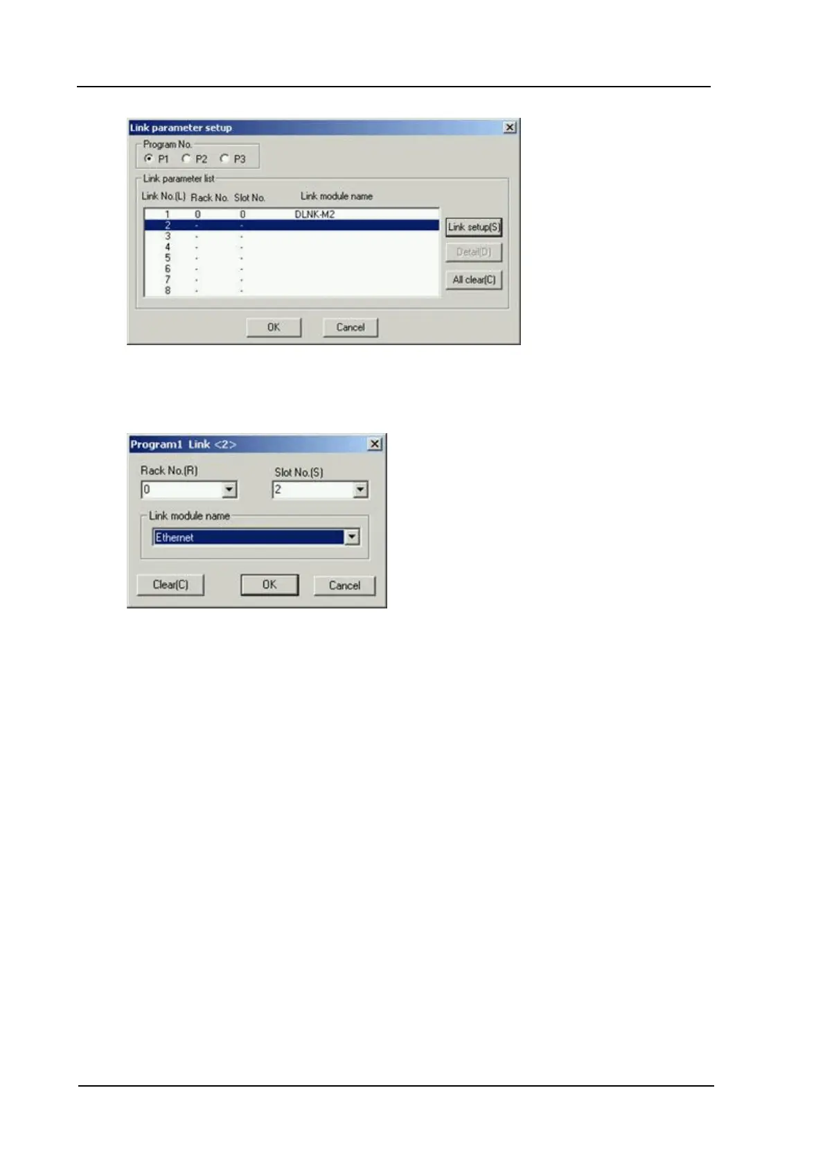8. In the ProgramName Link dialog, select the Rack No. and Slot No. where the module is located.