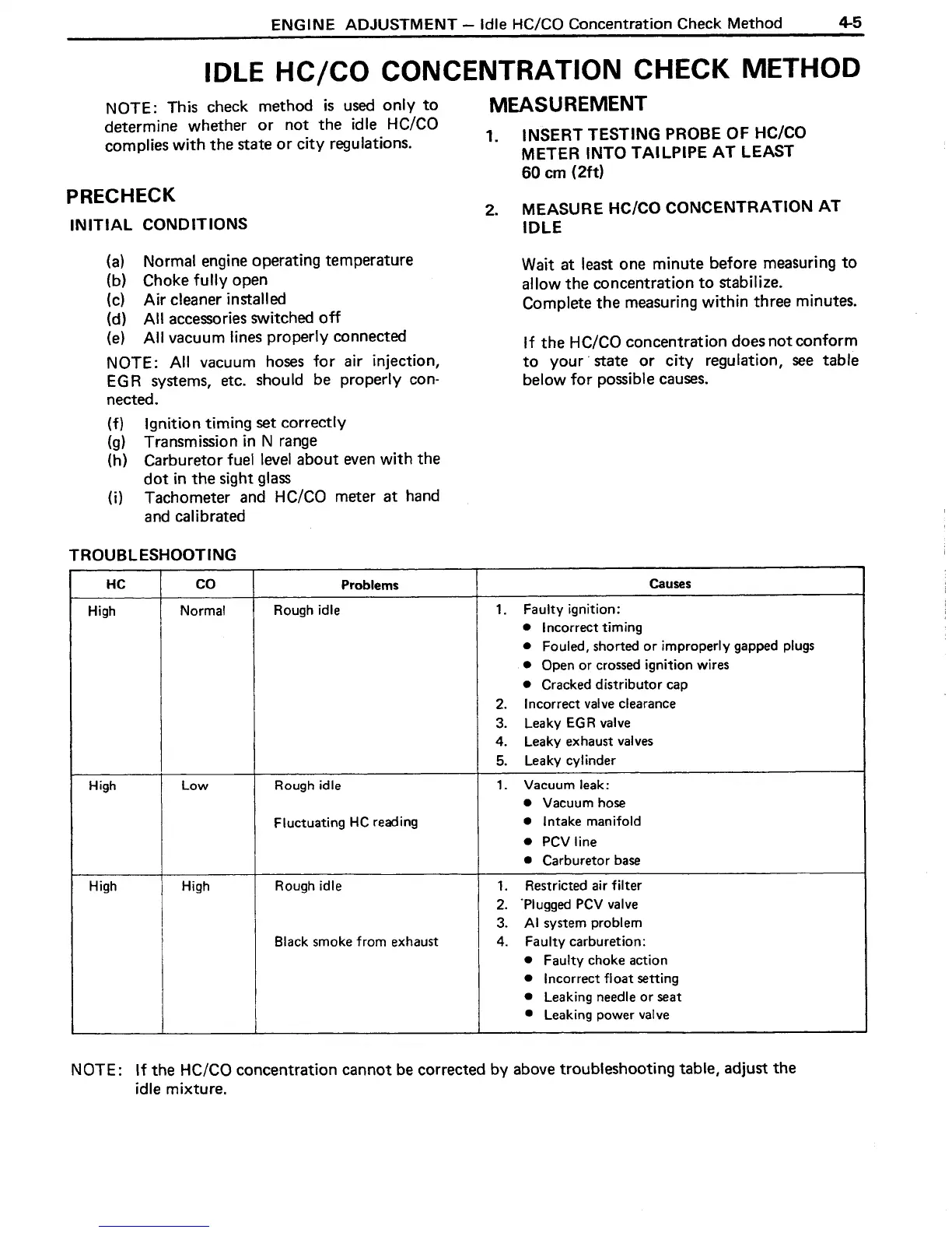Toyota 1981 2F - Idle HC;CO Concentration Check Method