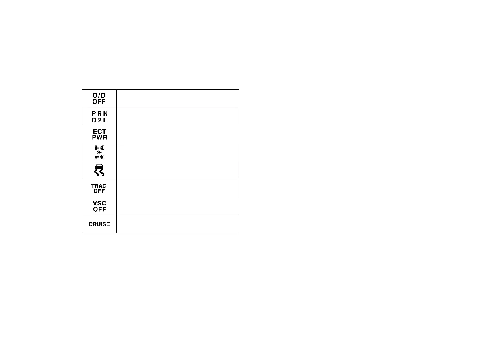 Automatic transmission indicator lights