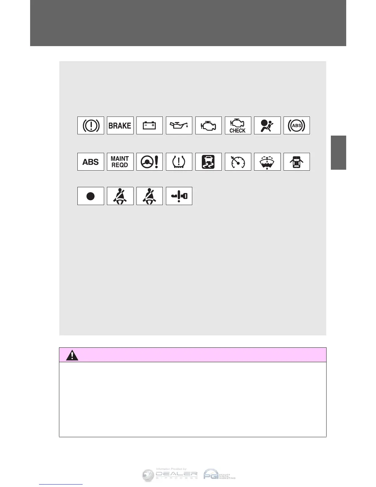 death or serious injury. Have the vehicle inspected by your Toyota dealer