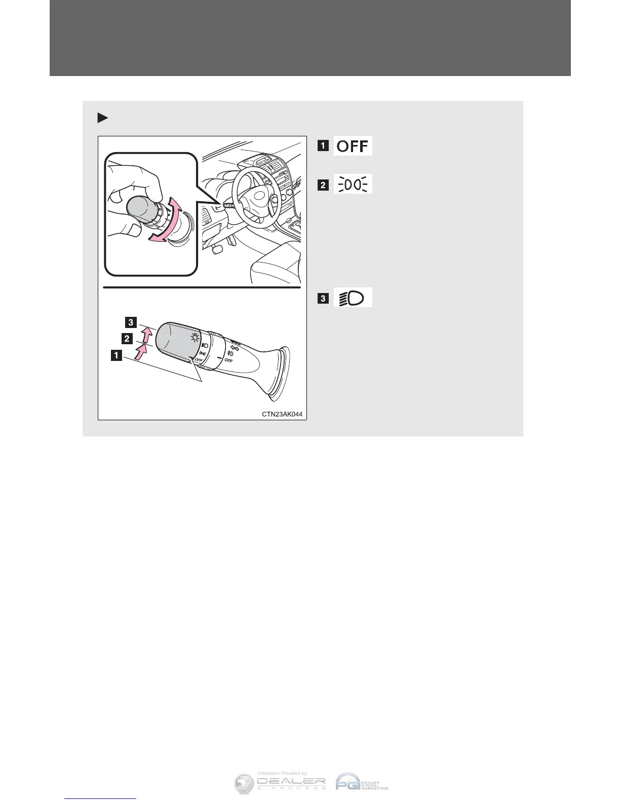 Toyota 2012 corolla - Headlight Switch; Operating the Lights and Wipers