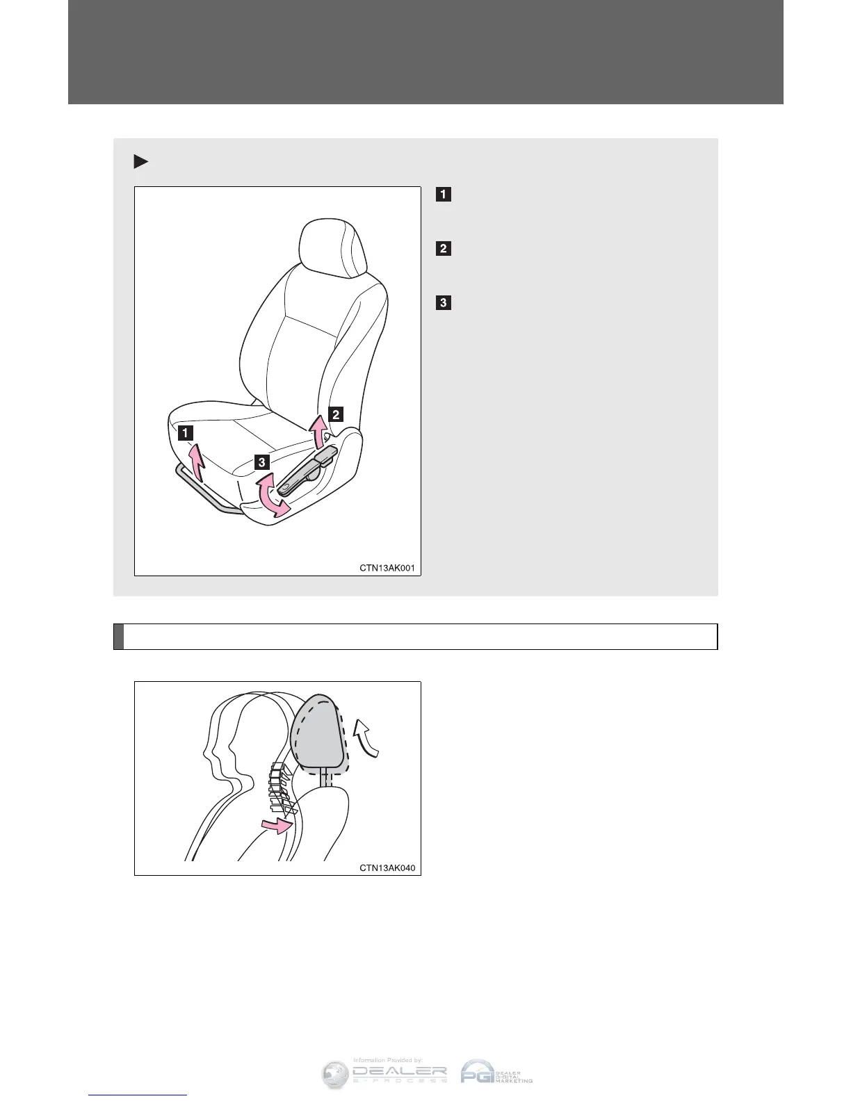 1-3. Adjustable components (seats, mirrors, steering wheel)