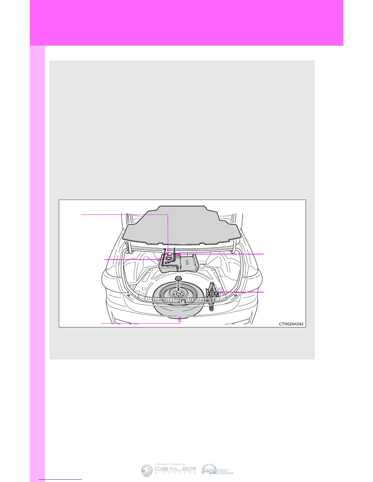 ■ Location of the spare tire, jack and tools