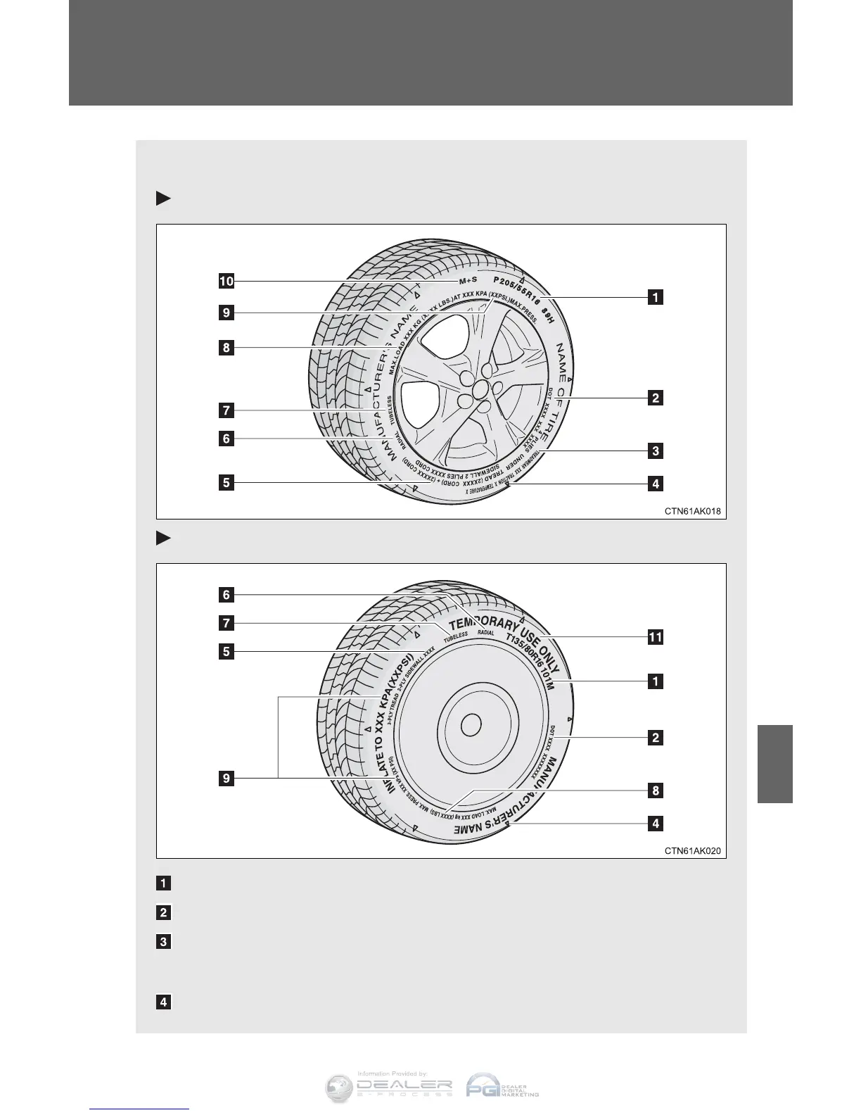 Toyota 2012 corolla - Compact Spare Tire; Full-Size Tire; Typical Tire Symbols